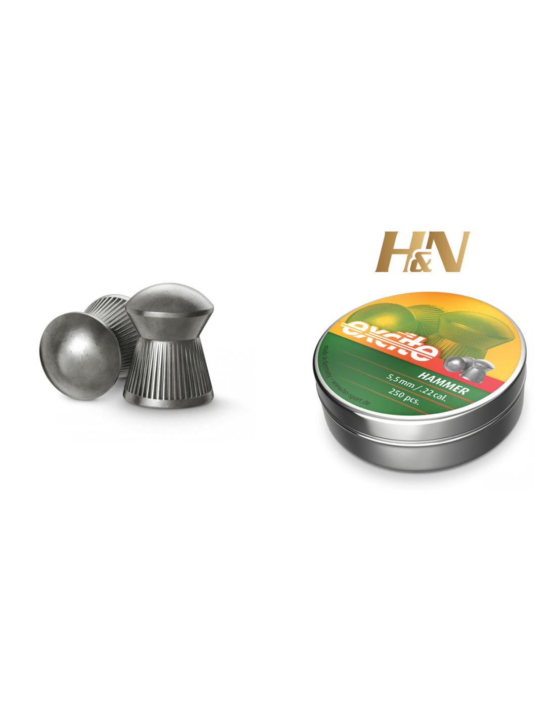 Excite-Hammer: Excelente para dianas abatibles. Balín de peso medio, preciso para plinking, tiro aficionado y pistola de CO2 en distancias medias. Aerodinámica mejorada gracias a la forma inglesa (cabeza redonda) para una trayectoria plana. Excelente para dianas abatibles. Estriado.