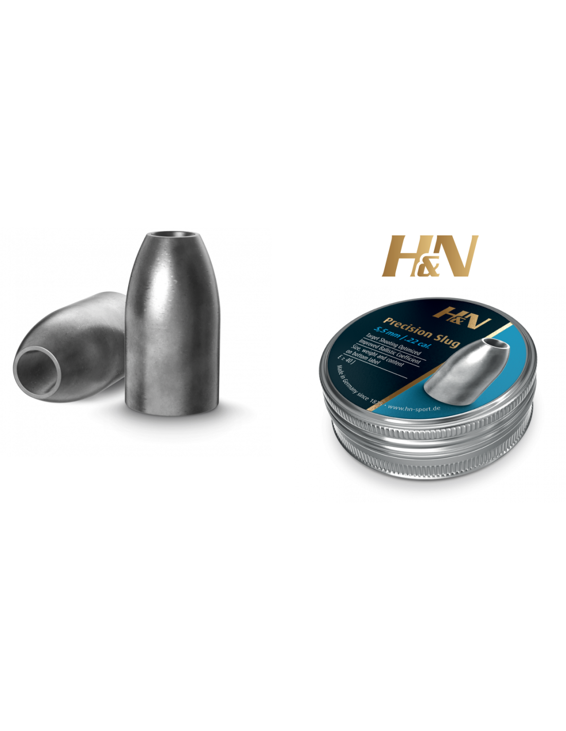El H&N Slug Precisión amplía la gama de productos en calibre .22/5,5mm y está diseñado para tiro al blanco de largo alcance con pistolas o carabinas de aire comprimido de alta potencia. Es incluso más confiablemente preciso que los otros H&N Slugs y con un B.C promedio de 0.140, es significativamente menos susceptible al viento y mantiene una trayectoria más plana. Es la forma optimizada de la ojiva y de la cavidad lo que eleva el factor BC.