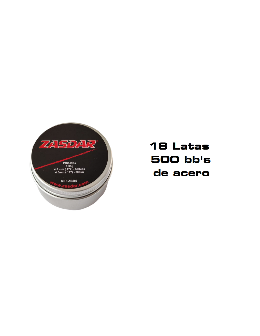 Caja 18 unid. Steel Bbs 4,5 mm. Zasdar Lata 500 u.
