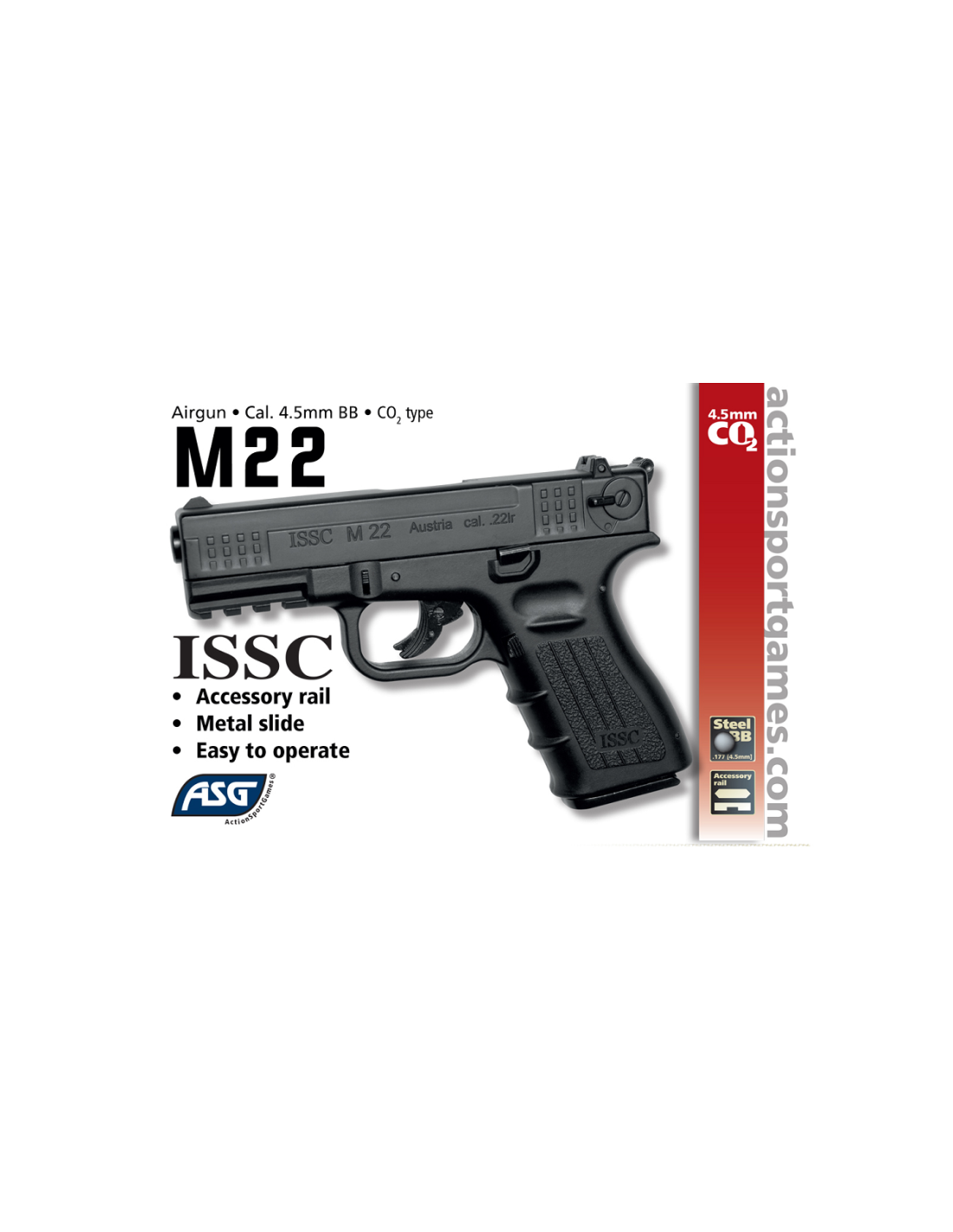 Pistola ASG ISSC M22 con Blowback. Color negro - 4,5 mm CO2