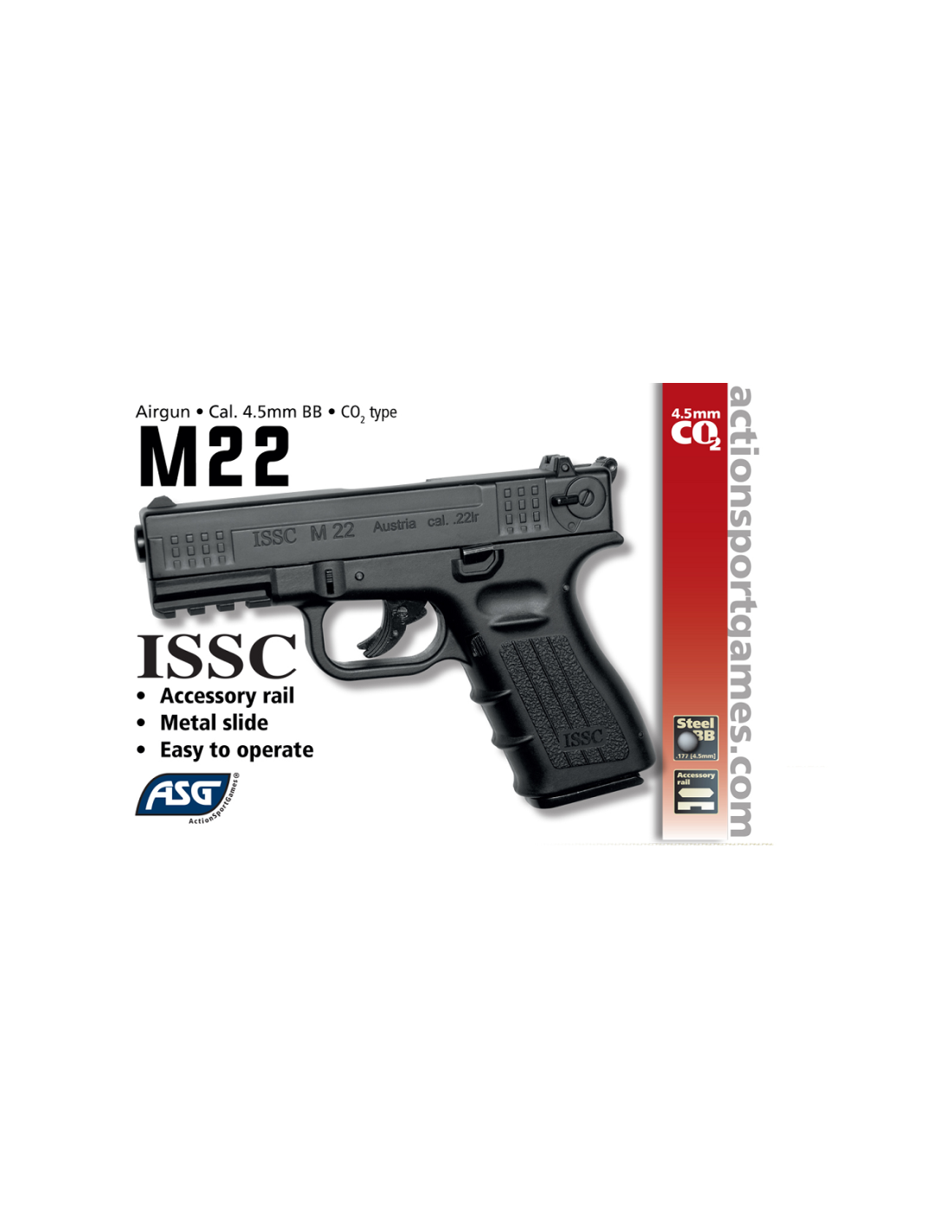 Pistola ASG ISSC M22 sin blowback. Color negro - 4,5 mm CO2