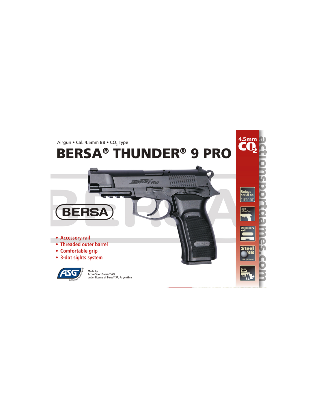Pistola BERSA THUNDER 9 PRO - 4,5 mm Co2 Bbs Acero