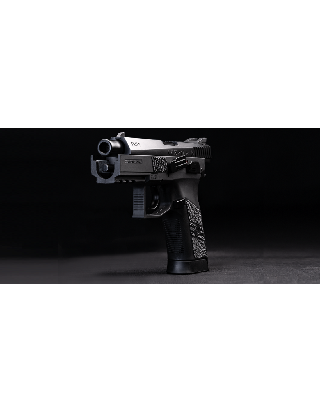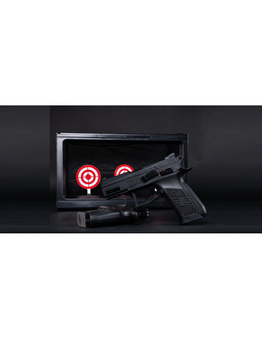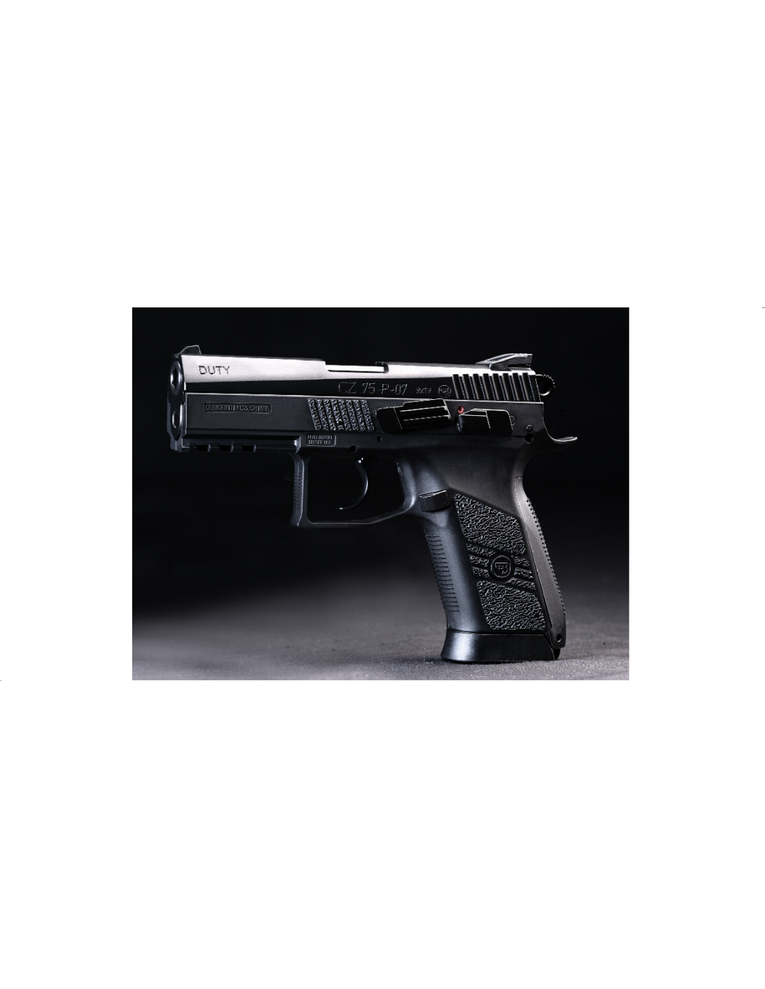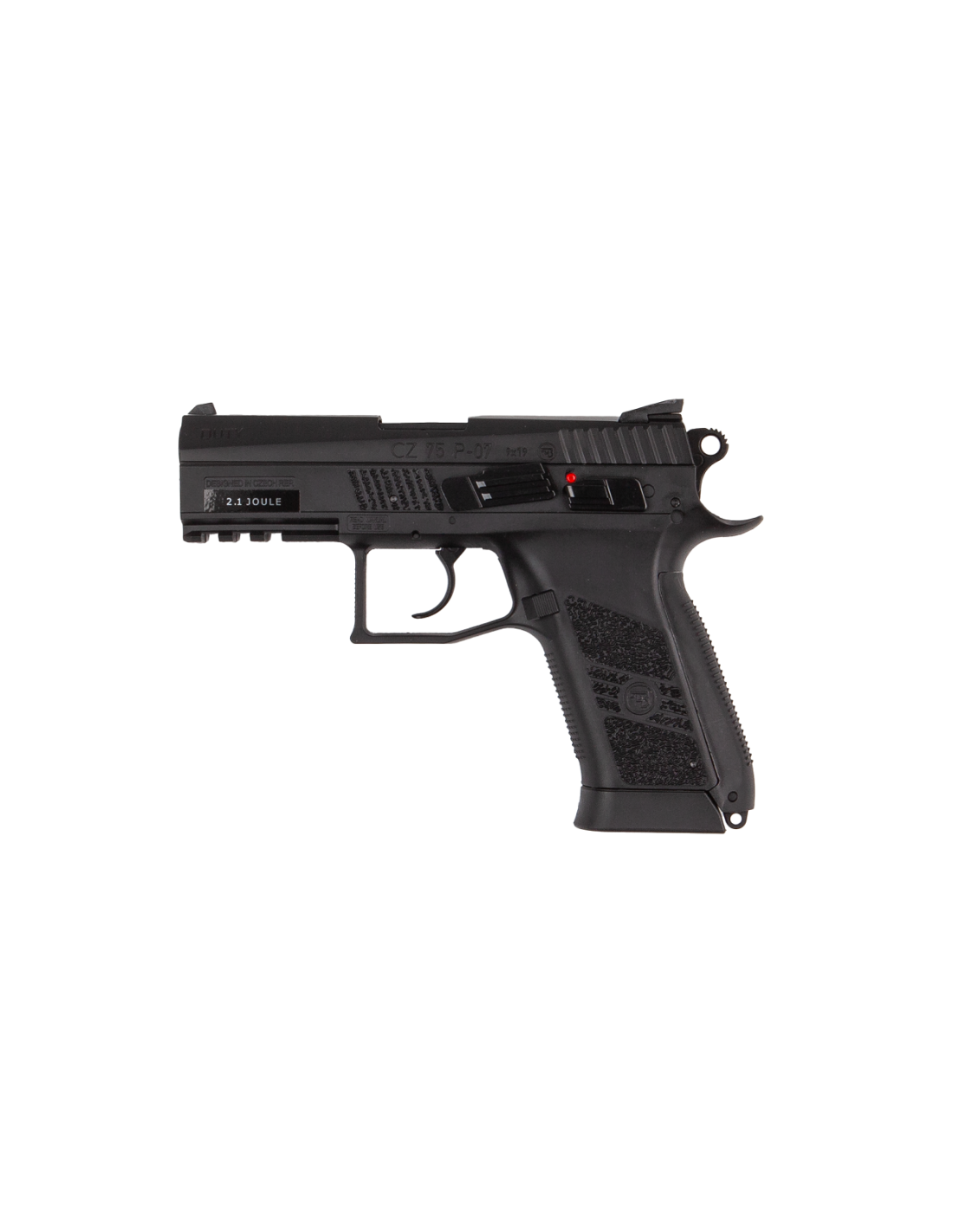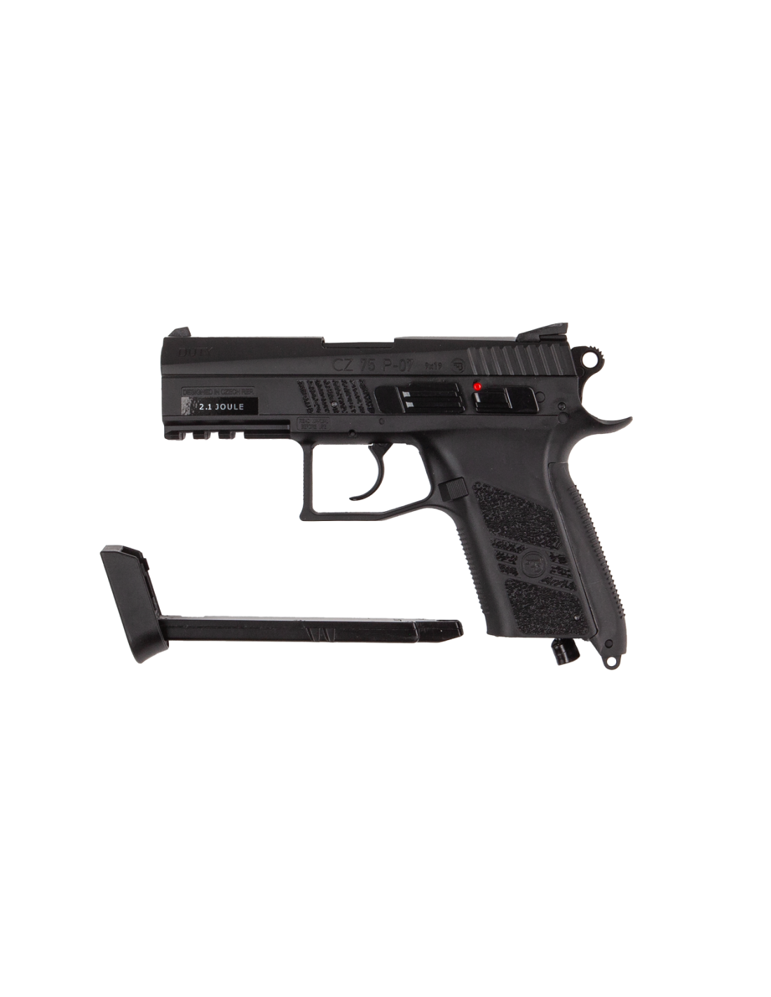 El CZ 75 P-07 DUTY es la nueva generación de la familia CZ 75 que fue diseñada por primera vez en 1975 por el famoso fabricante de armas pequeñas Ceská zbrojovka, República Checa. Ésta es la versión semi automática Blowback de aire comprimido de 4.5 mm (.177) con licencia completa de CZ. Está alimentada por una cápsula de CO2 de 12 g almacenada en el grip utilizando el sistema easyload y los BB se colocan en cargador drop-out. El CZ 75 P-07 DUTY es una versión táctica mejorada comparada con el CZ 75 estándar. Además de ser más compacta en tamaño, el P-07 DUTY tiene un rail frontal integrado para montar una luz y/o un láser. El grip y la corredera de metal llevan marcas auténticas de CZ y cada arma viene con un número de serie único.