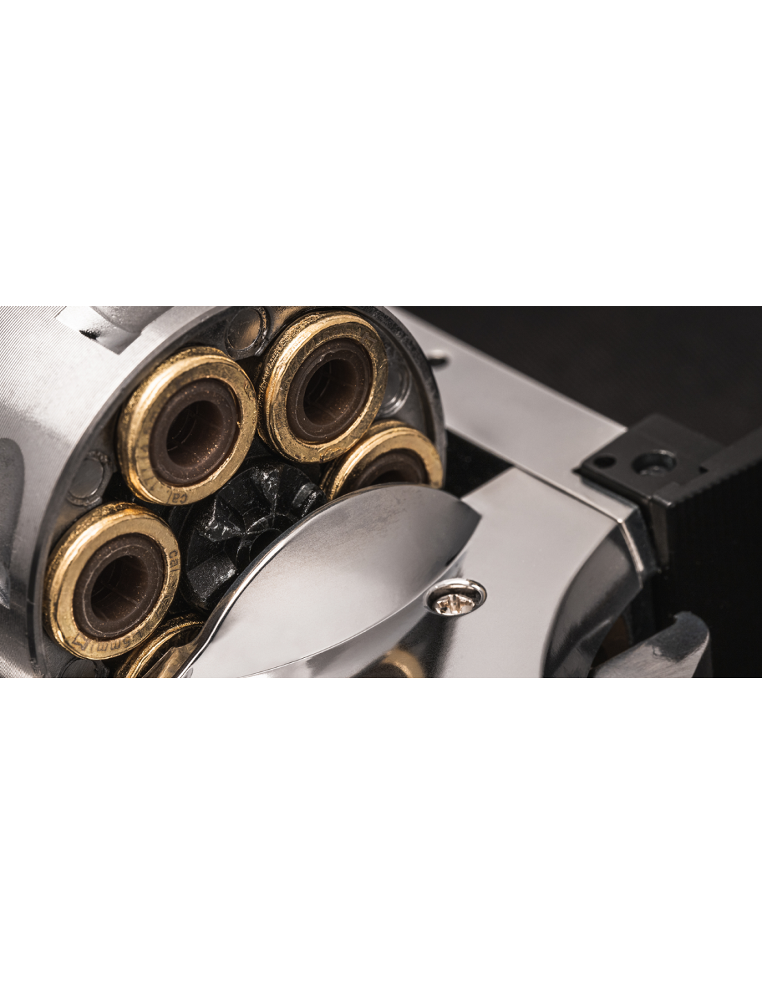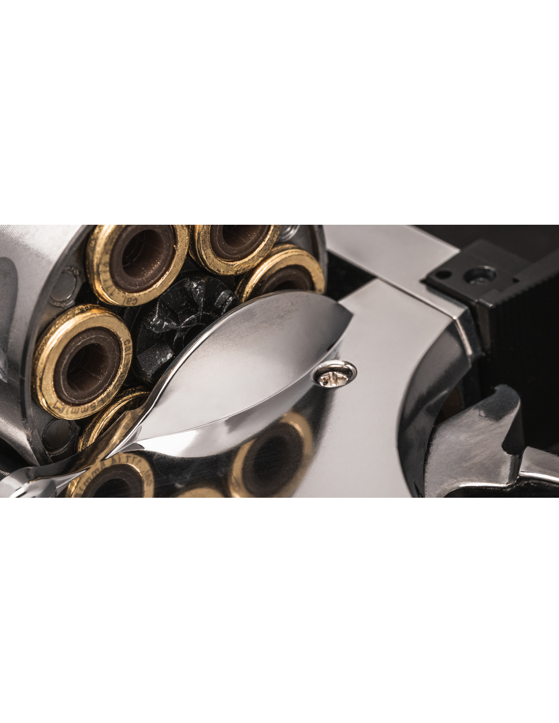 Dan Wesson 715: Impresionante ingeniería de precisión, perfecto agarre y sensación de solidez. Cañones pesados y de una sola pieza, la posibilidad de montar accesorios ópticos, empuñadura de goma imitación Hogue ®, una suma de características que convierte a todos los miembros de la nueva serie de revólveres 715 Dan Wesson en los mejores revólveres del mercado. La serie está disponible en 3 tamaños de cañón, 6, 4 y 2'5 pulgadas y con dos acabados, ambos muy elegantes y de gran vistosidad: el clásico acero plateado y en gris acero.