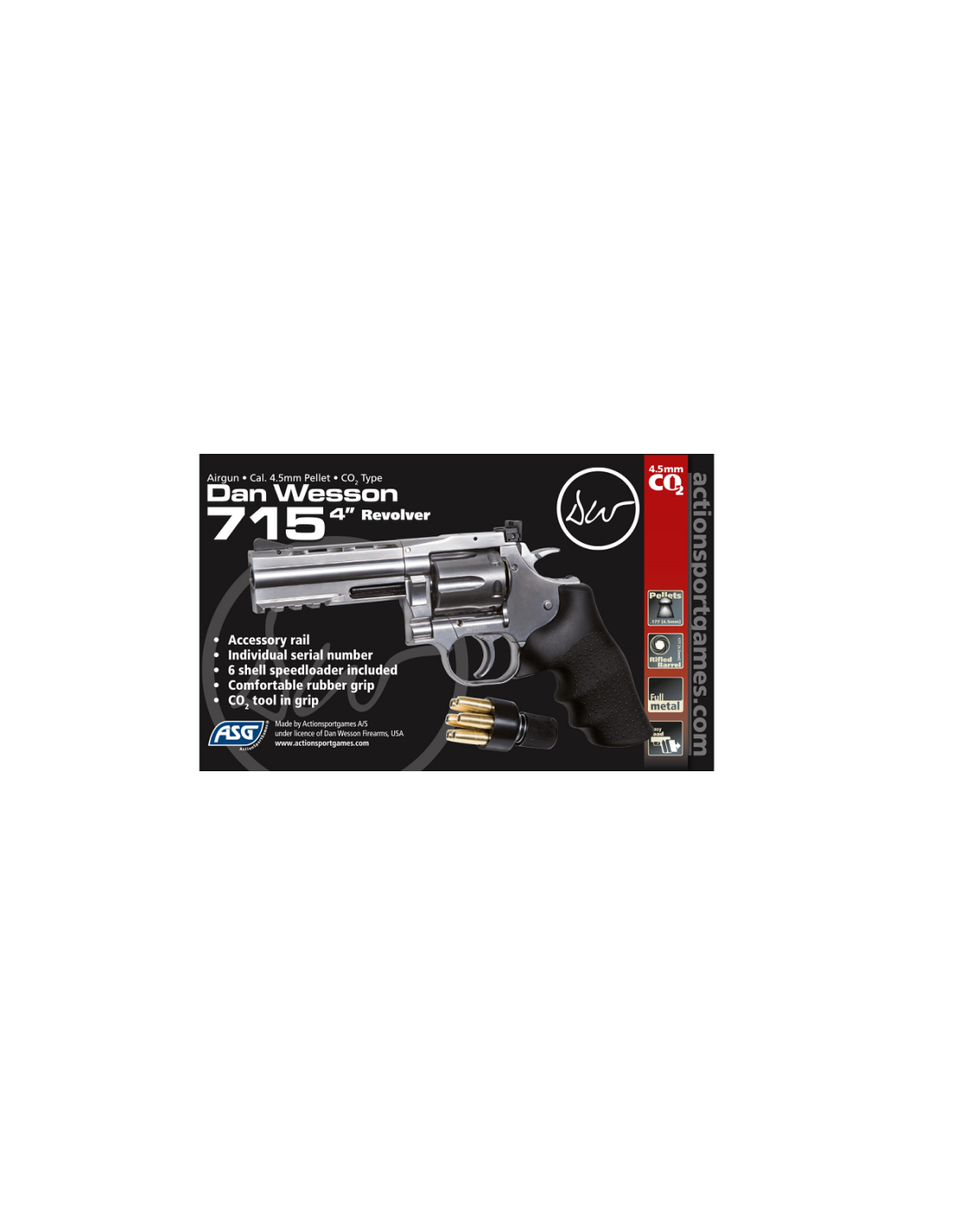 Revolver Dan Wesson 715, 4" Silver - 4,5 mm CO2 Balines de plomo.