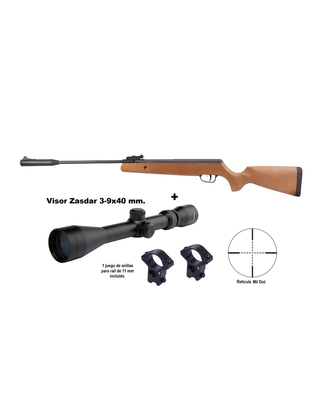 Carabina aire comprimido Snowpeak - Zasdar GR1000W Madera Gas Piston 4,5 mm con Visor 3-9x40