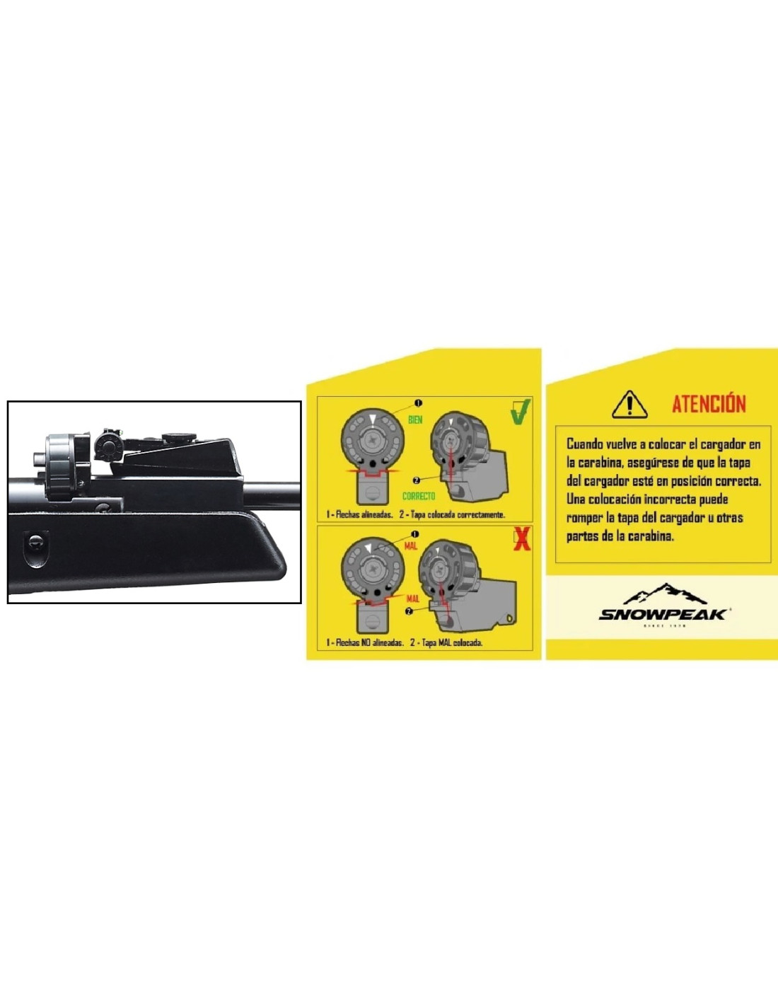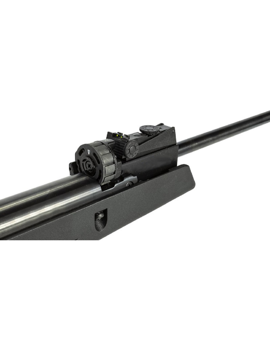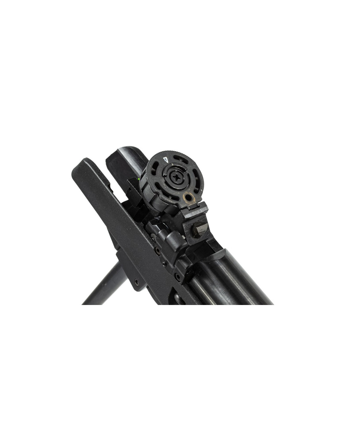 Carabina de gas pistón con un novedoso sistema de cargador rotativo que le permite al tirador disparar 12 balines sin recargar.