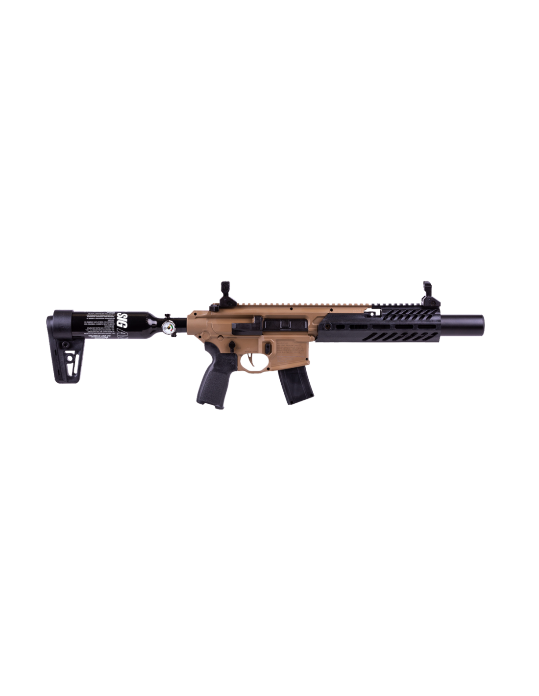 Basado en los innovadores diseños del SIG MCX Rattler Canebrake, este modelo PCP con miras abatibles y cargador de 30 balines es ideal para entrenamiento y práctica.