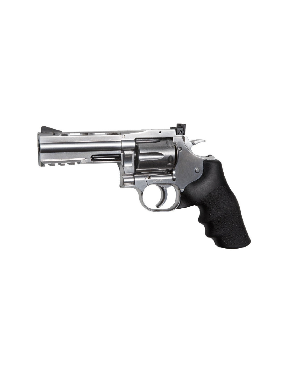 El más corto de los revólveres Dan Wesson es esta versión con un cañón de 4 ". Éste es un hermoso revólver plateado. La fabricación completamente metálica le da una impresión muy sólida y se puede sentir su calidad inmediatamente. La cápsula 12g Co2 se carga en la empuñadura y cada una de los 6 cartuchos realistas puede contener una BB que se dispara a más de 130 m/s (420 fps) Incluye: cargador rápido, 2 raíles tácticos intercambiables y 6 cartuchos.