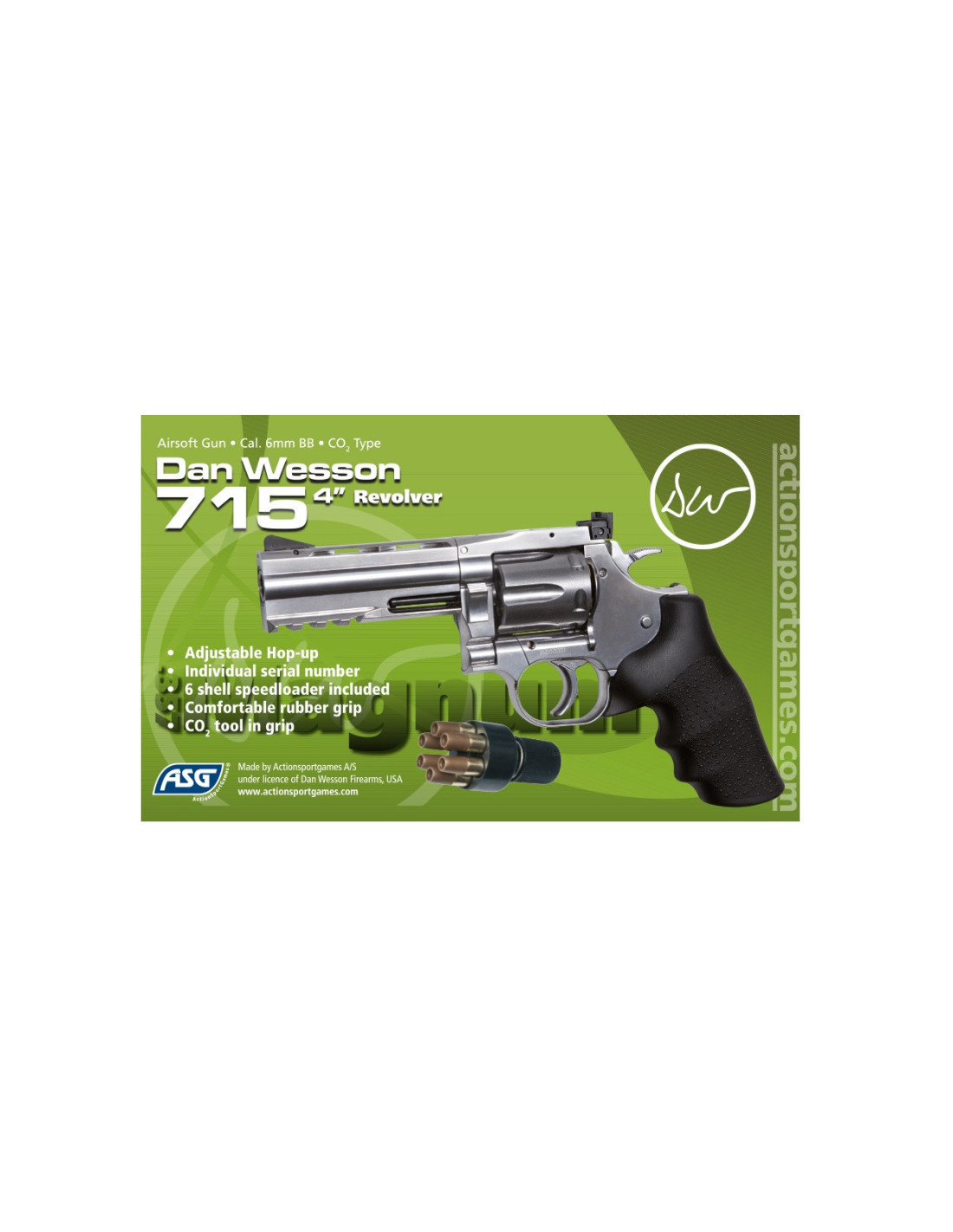 Airsoft - CO2 - Dan Wesson - ASG - No blowback - Rail - Doble acción - Full metal - Carga fácil - Número de serie único - Plata - 6 mm -> 1-2J