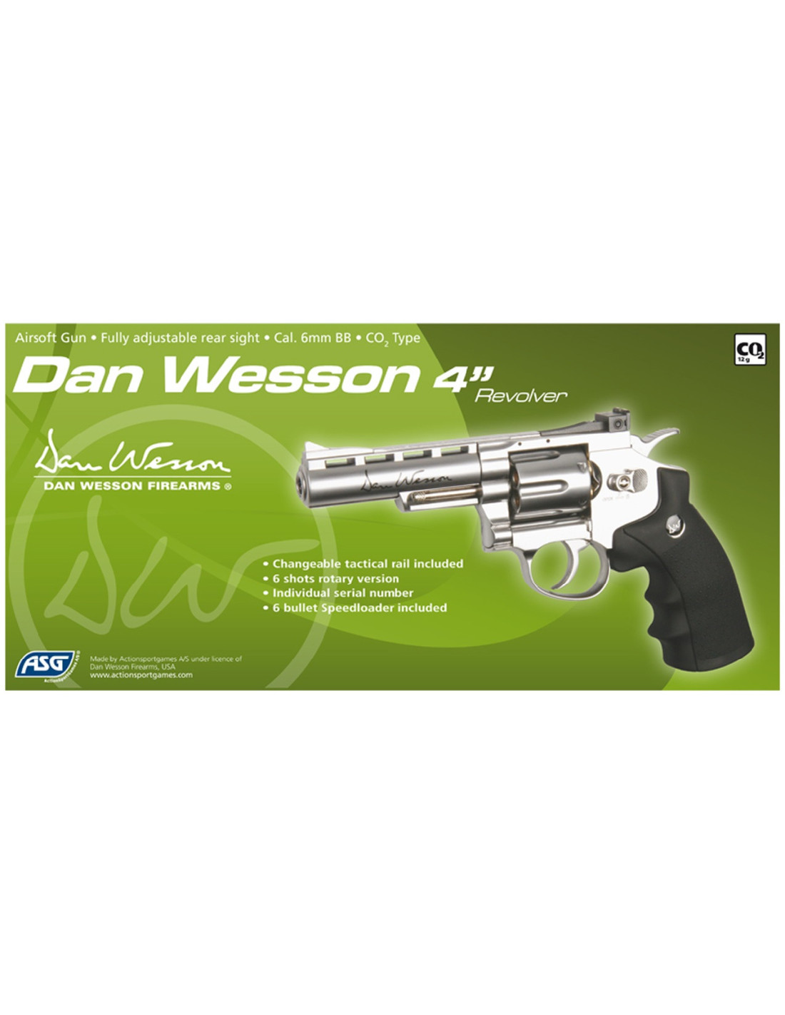 Airsoft - CO2 - Dan Wesson - ASG - No blowback - Rail - Doble acción - Full metal - Carga fácil - Número de serie único - Plata - 6 mm -> 1-2J