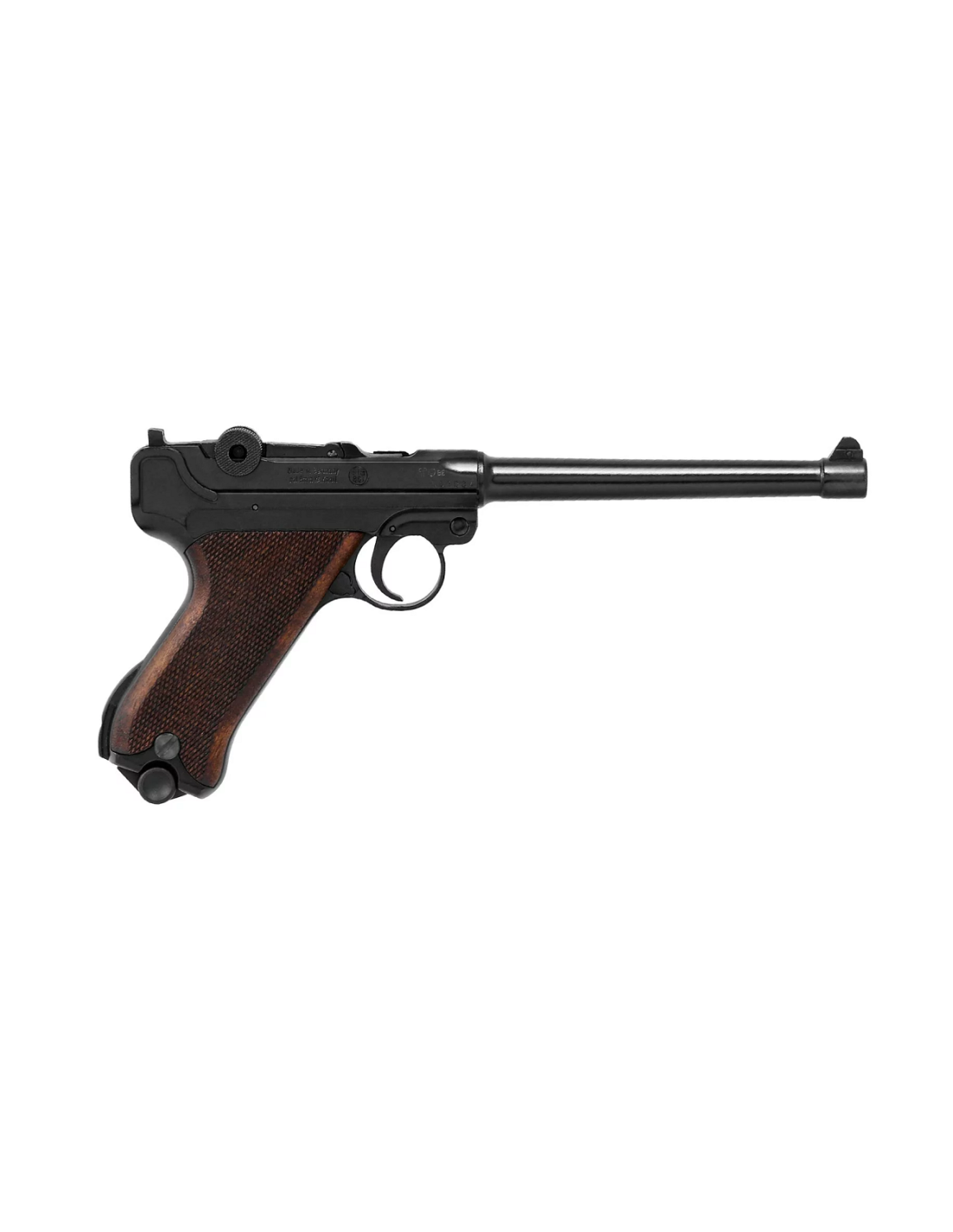 Réplica detallada de la famosa Luger, el modelo P 04, con cañón mas largo que la original, se destinó a la marina alemana. Modelo de alta calidad que, al igual que el arma original, cuenta con una sensible tecnología de autocarga y bloqueo de rótula.