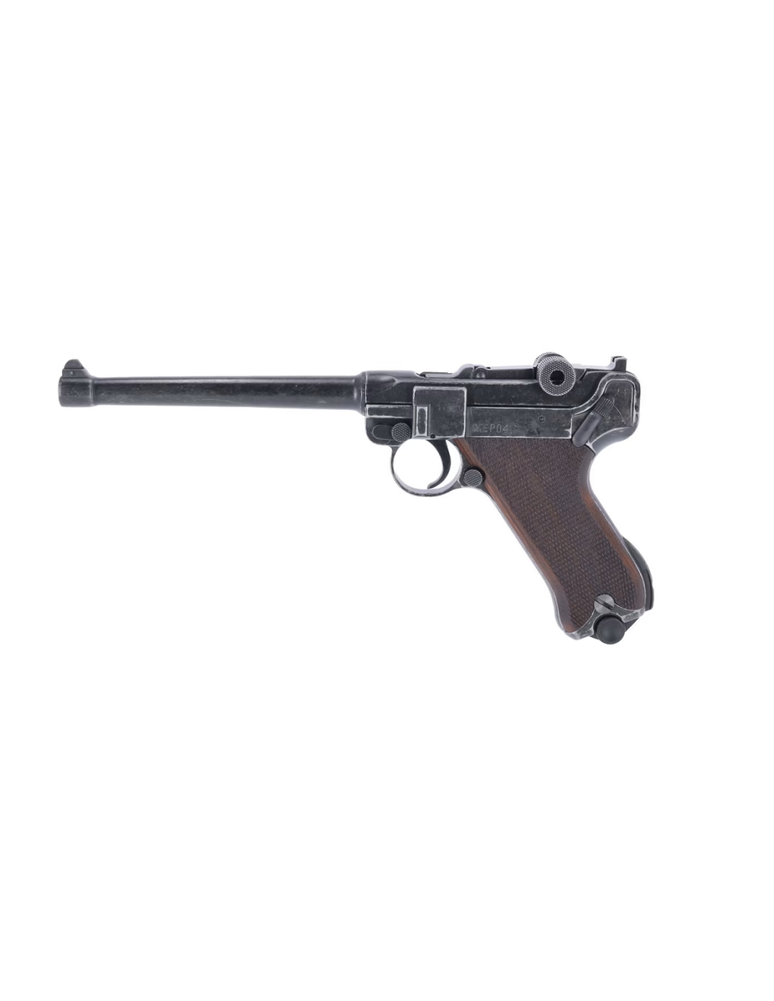 Réplica detallada de la famosa Luger, el modelo P 04, con cañón mas largo que la original, se destinó a la marina alemana. Modelo de alta calidad que, al igual que el arma original, cuenta con una sensible tecnología de autocarga y bloqueo de rótula.