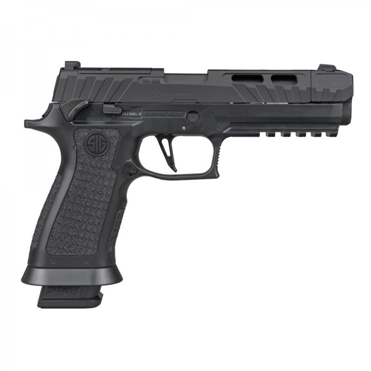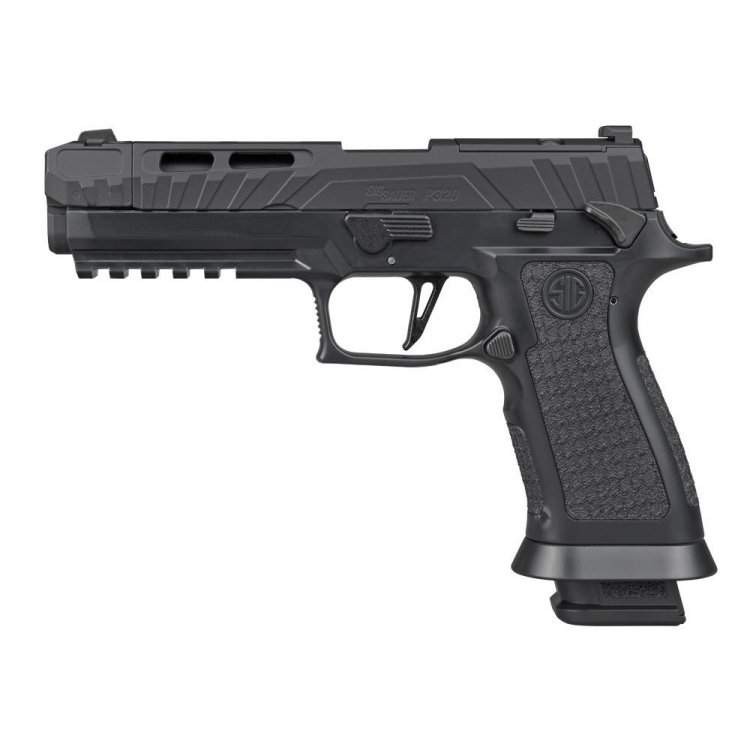 Detalles La P320 Spectre Comp Blackout aporta una nueva y audaz imagen a la familia de pistolas de aire comprimido de perdigones de SIG SAUER y está equipada con algunas de las características más avanzadas del mercado. Adaptada para perdigones calibre .177, esta pistola semiautomática de retroceso incorpora un módulo de empuñadura Serie X con un patrón de punteado especializado, exclusivo de la serie Spectre, además de un compartimento del cargador acampanado para facilitar el cambio rápido del cargador. Su sistema RPM (cargador rápido de perdigones) de tamaño completo, sin caídas, de 20 cartuchos cuenta con un alojamiento de CO2 integrado que permite tener cargadores de repuesto precargados y listos para usar. El cargador también está equipado con un sistema patentado de carga de CO2 por leva que permite cambiar rápidamente los cartuchos de CO2 sin necesidad de herramientas. Otras características incluyen una corredera totalmente metálica, combinada con un cañón compensado de un solo puerto para completar su aspecto de alta velocidad. Esta pistola también está equipada con una palanca de desmontaje funcional, que permite desmontar la corredera, el cañón y la guía de retroceso sin necesidad de herramientas. • El riel Picatinny facilita el montaje de miras láser y otros accesorios. • La corredera metálica con retroceso completo genera impulso de retroceso. • El sistema patentado de carga de CO2 con palanca de leva permite cambiar los cartuchos sin herramientas. Especificaciones: SKU AIR-P320SC-177-BLK Tipo de acción: Semiautomática Compatible con mira réflex SIG AIR: Sí Riel para accesorios: M1913 Sistema operativo: CO2 Miras: Contraste metálico Calibre: .177 cal Rango óptimo de peso del perdigón: 5,0 gr - 8,0 gr (0,32 g - 0,51 g) Cargadores incluidos: (1) cargador de perdigón de 20 cartuchos Longitud total: 8,5 pulgadas (216 mm) Peso del gatillo: 4,5 lb Velocidad de salida: 340 FPS (103,6 MPS) con 7,71 gr (0,50 g) Tamaño del cilindro de CO2: 12 g Peso: 37,0 oz (1,05 kg)