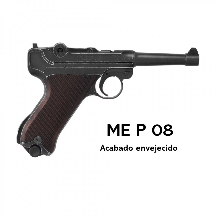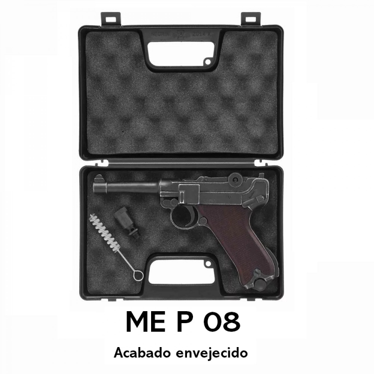 Arma de fogueo en calibre 9 mm P.A.K. Réplica detallada de la famosa Luger modelo P 08. Modelo de alta calidad que, al igual que el arma original, cuenta con una sensible tecnología de autocarga y bloqueo de rótula. Disparo tan realista como el original. Perfecto para coleccionistas. Características: - Calibre: 9 mm P.A.K. - Cargador para 4 cartuchos. (El fabricante no recomienda introducir más para evitar atascos y mal funcionamiento, no apta para tiro rápido) - Base de acero. - Bloqueo del cargador. - Bloqueo de rótula (como el original). - Cachas de la empuñadura: Madera, antideslizantes. - Acabado: Envejecido. - Longitud: 220 mm. - Cañón: 105 mm. - Peso: 890 g (aprox.). IMPORTANTE: En cumplimiento de la legislación vigente, para adquirir un arma detonadora el comprador tiene que enviar por correo electrónico copia del DNI por ambas caras. Además, el comprador tiene que cumplir, como mínimo, una de las siguientes condiciones y enviar copia del documento que le acredite: 1/ Ser titular y poseer Libro de Coleccionista de armas. 2/ Ser titular y disponer de Licencia de armas en vigor. 3/ Ser titular y disponer de la acreditación para su uso en alguno de estos cuatro casos: Actividades deportivas, adiestramiento canino, espectáculos públicos y actividades recreativas o filmaciones cinematográficas y artes escénicas. Si no se envía la documentación indicada, el pedido no tiene validez.