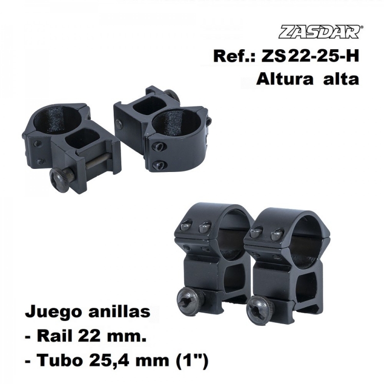Monturas Zasdar Altura Alta Ø25 mm - 21 mm (Weaver o Picatiny)