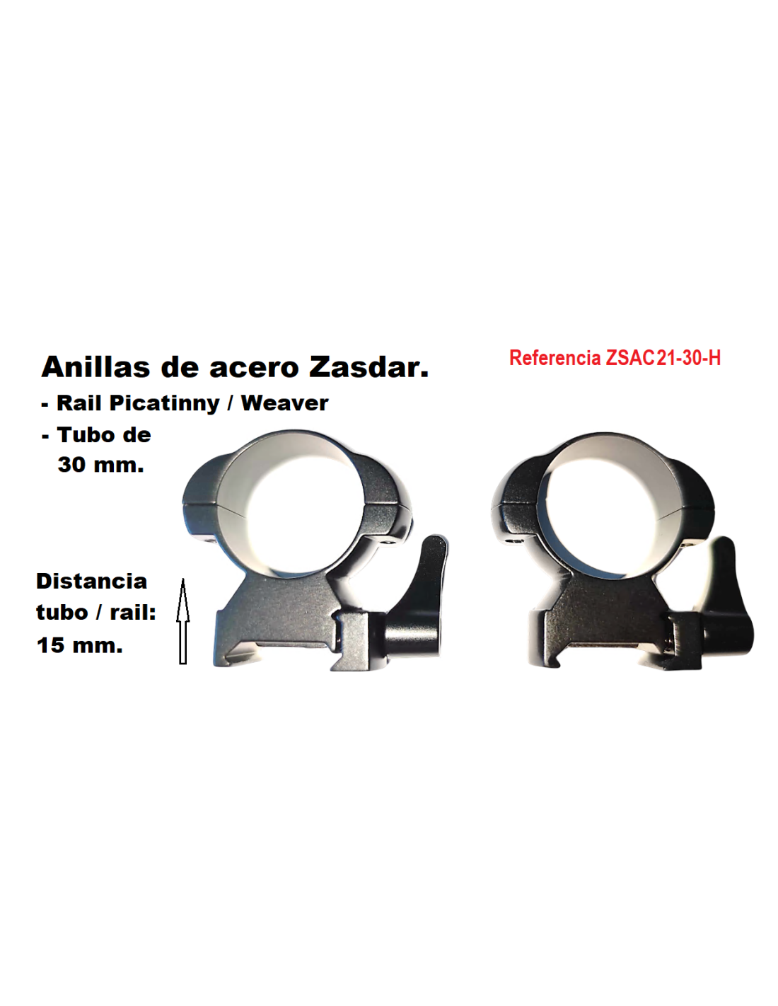 Monturas de Acero Zasdar Altura Alta Ø30 mm Rail 21 mm (Weaver o Picatiny)
