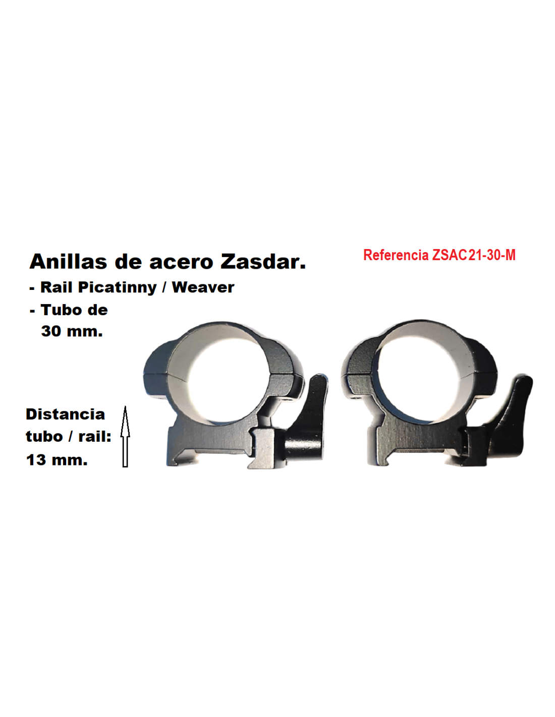 Monturas de Acero Zasdar Altura Media Ø30 mm Rail 21 mm (Weaver o Picatiny)