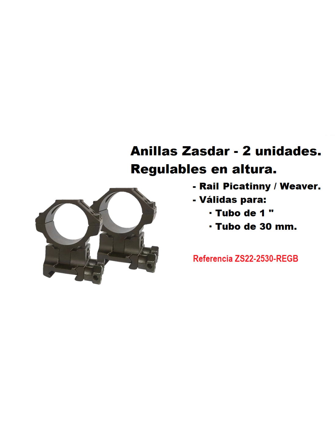 - Monturas Altura Alta Zasdar Ø25 mm - Ø30 mm / rail 21 mm (Weaver o Picatiny)