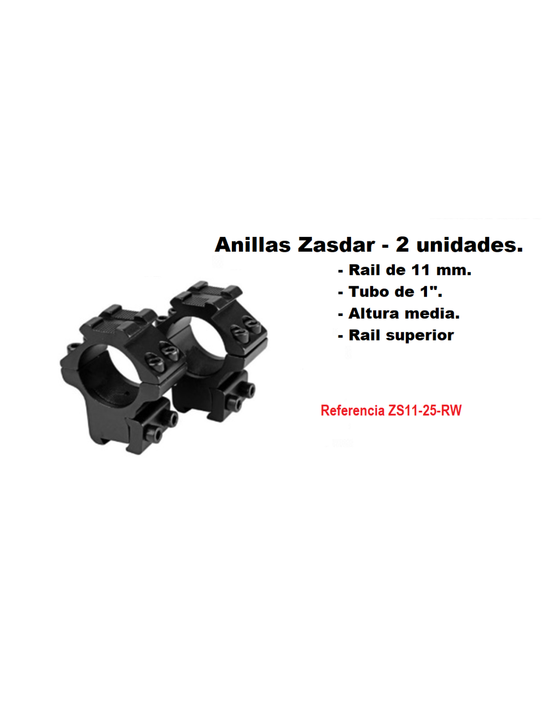 - Monturas Zasdar Altura Media con rail superior Weaver Ø25 mm / rail 9 - 11 mm
