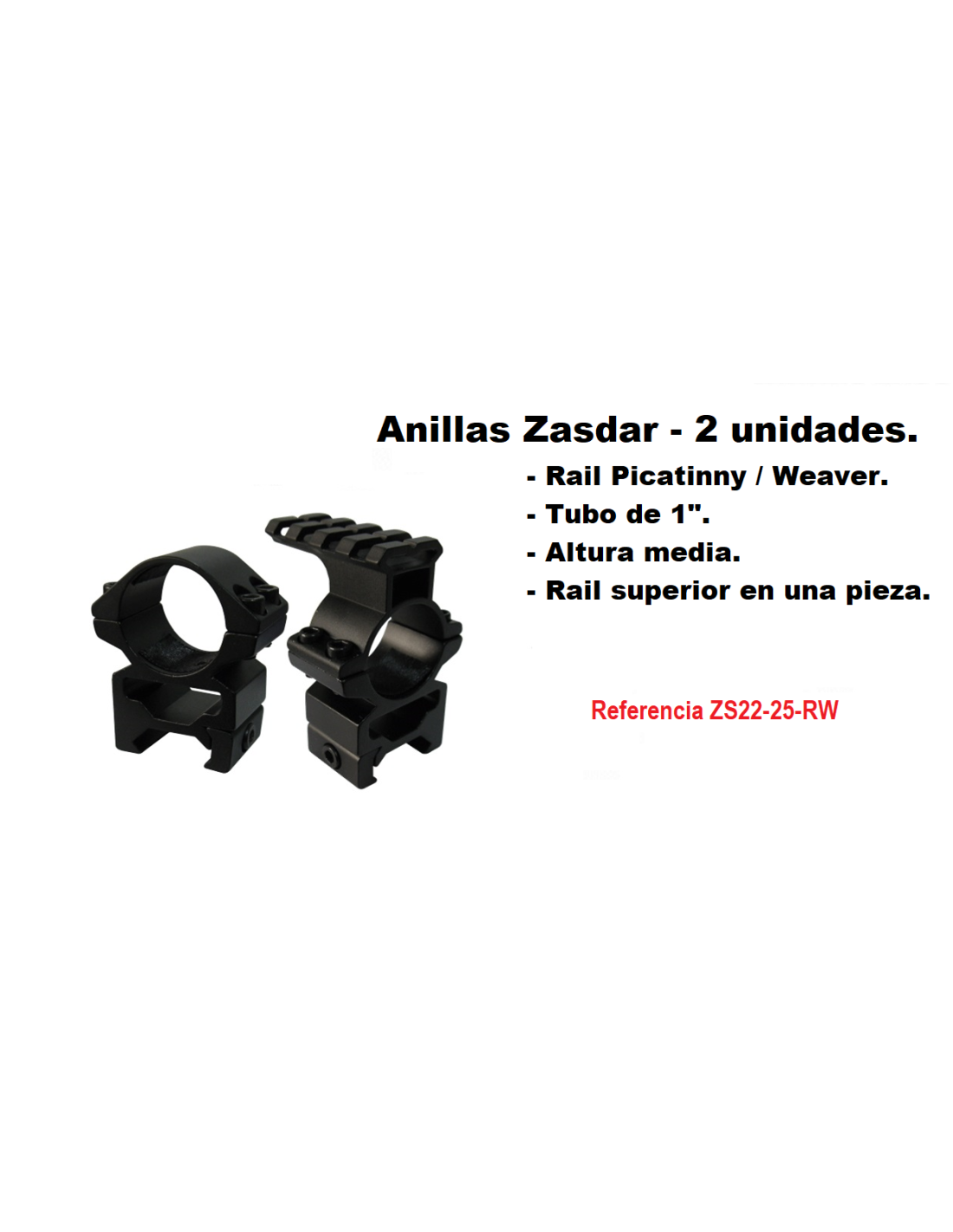 - Monturas Zasdar Altura Media Ø25 mm - con rail Weaver superior - p/ 21 mm (Weaver o Picatiny)