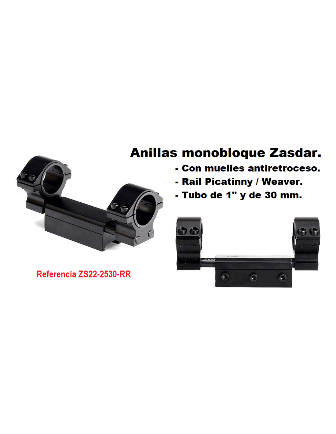 - Monturas Zasdar MonoBlock Zero Recoil Ø25-030 mm Rail Weaver/Picatinny