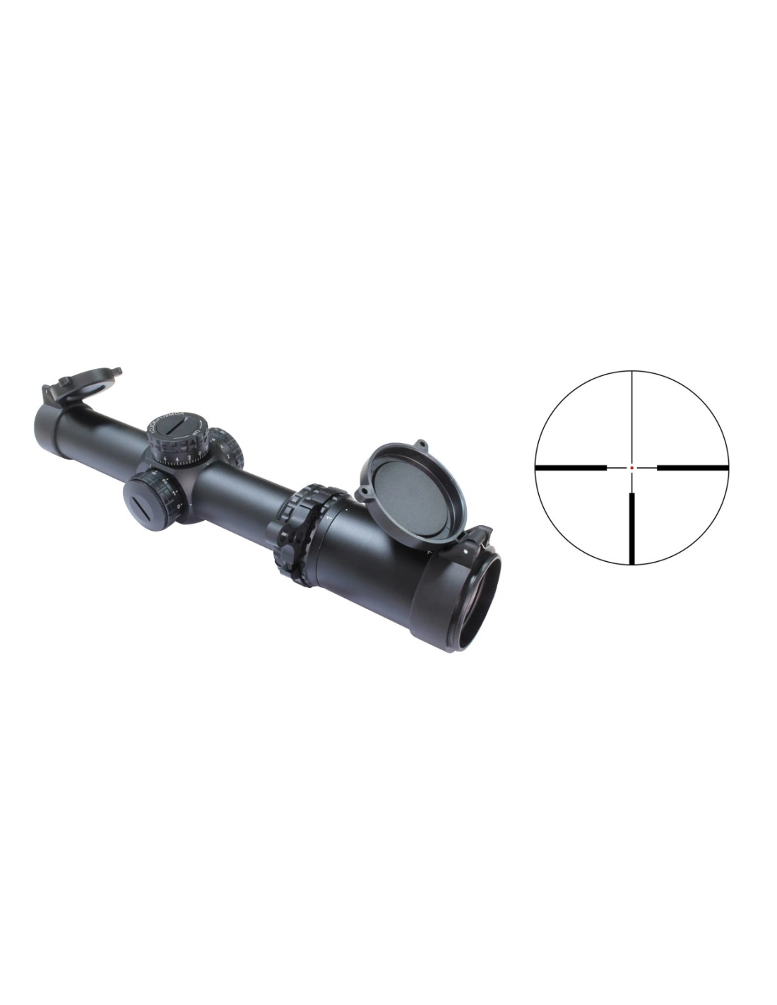 - Retícula iluminada tipo 4 con punto iluminado, sin anillas o monturas.