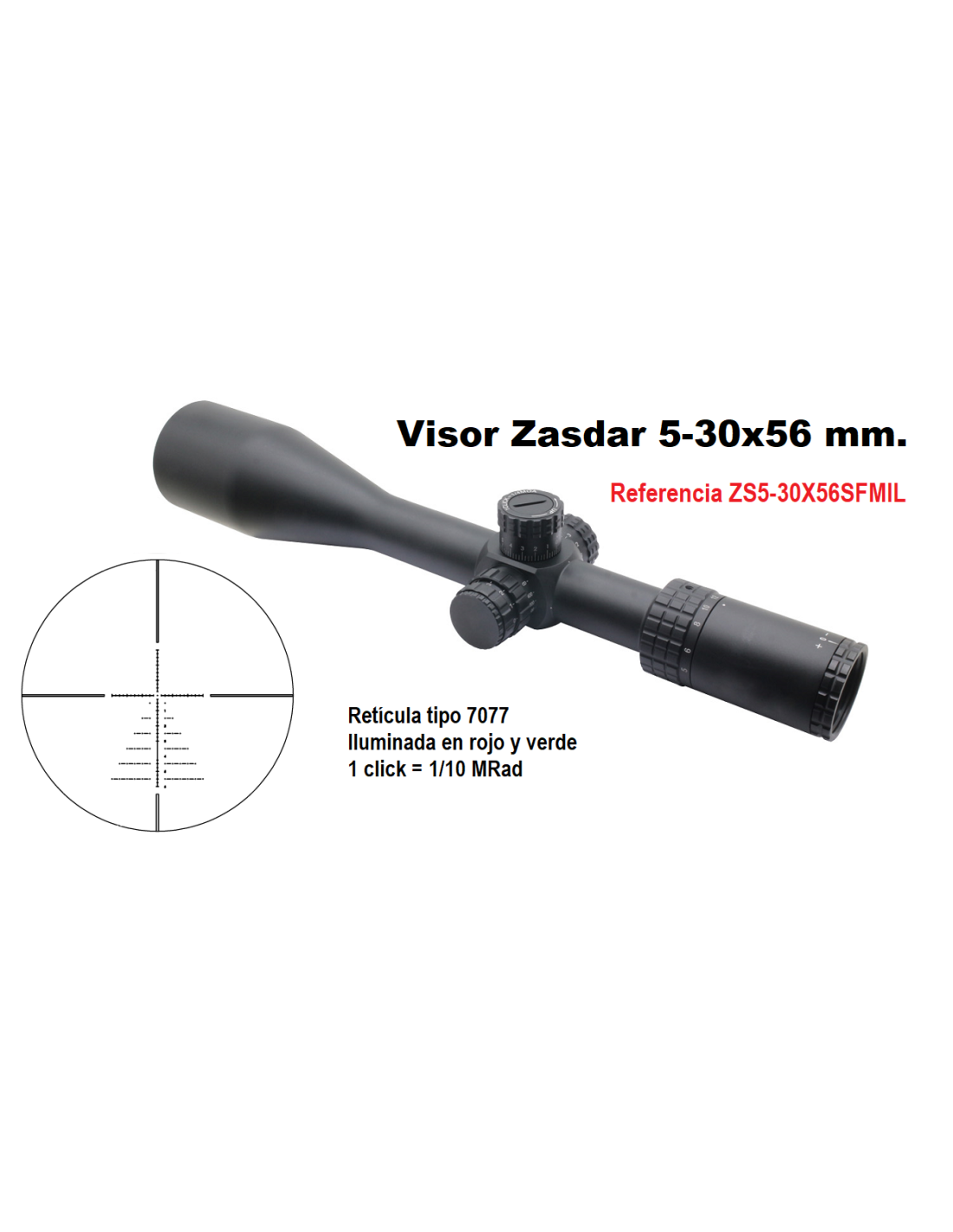 - Visor Zasdar 5-30X56 mm en miliradianes.